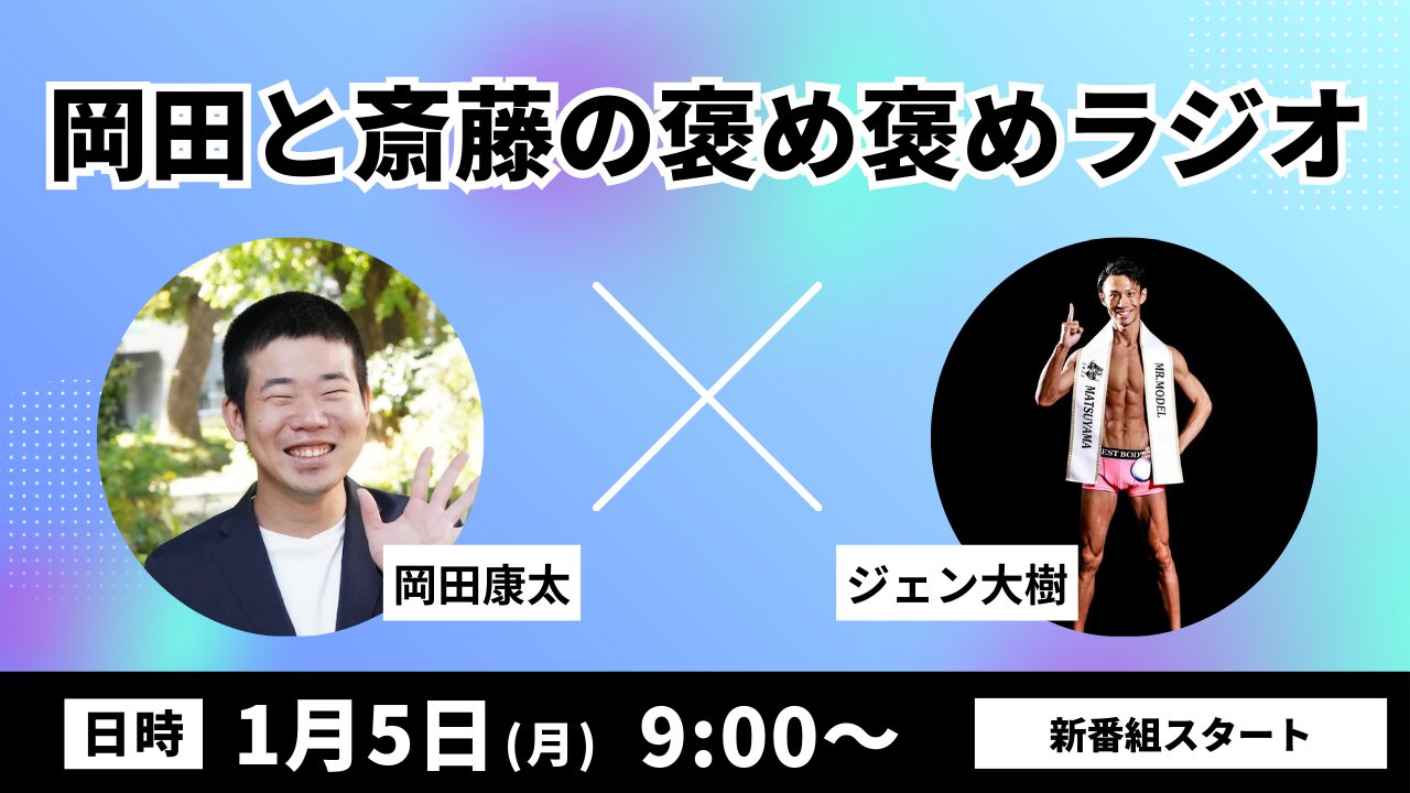 金沢シーサイドFMは、2026年1月5日(月)午前9時より新ラジオ番組「岡田と斎藤の褒...